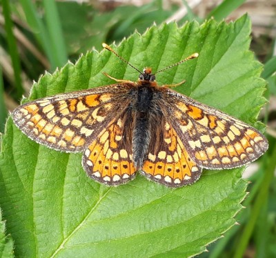 The Marsh Fritillary (Euphydryas aurinia) is a native butterfly which has become increasingly scarce, so much so that it is protected by law. Cross Hands and the surrounding area holds one of the last remaining strong populations in Britain.